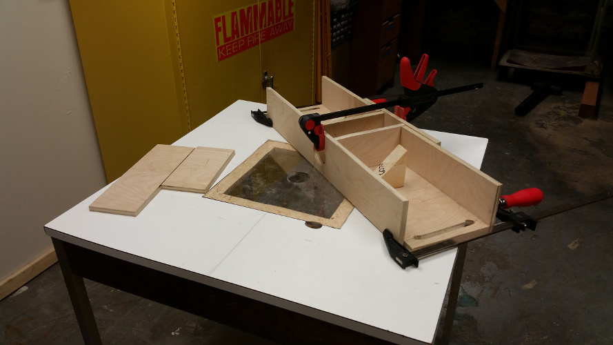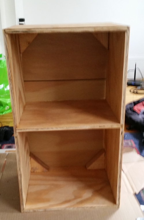 And assemble. By design this just requires wood glue and clamps, although at the last minute I decided to add extra triangle pieces in the corners to ensure that the cubbies don’t tilt.
