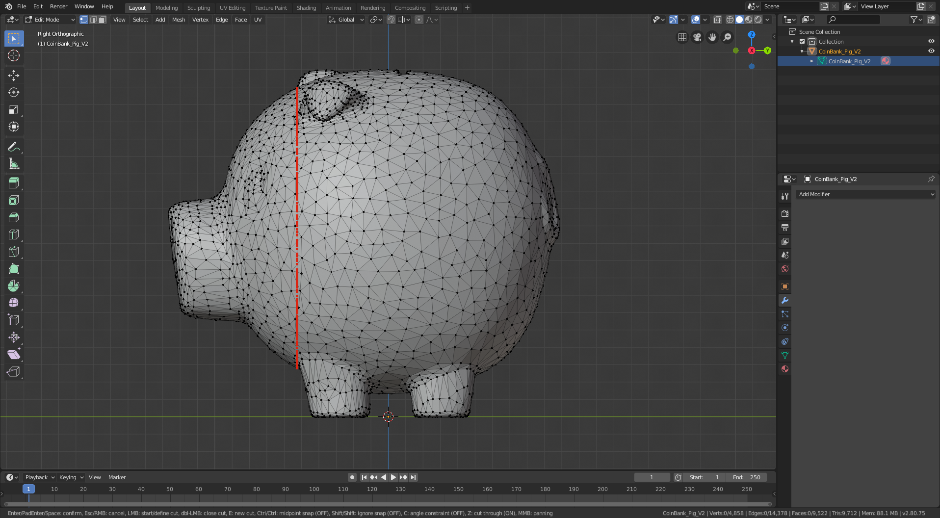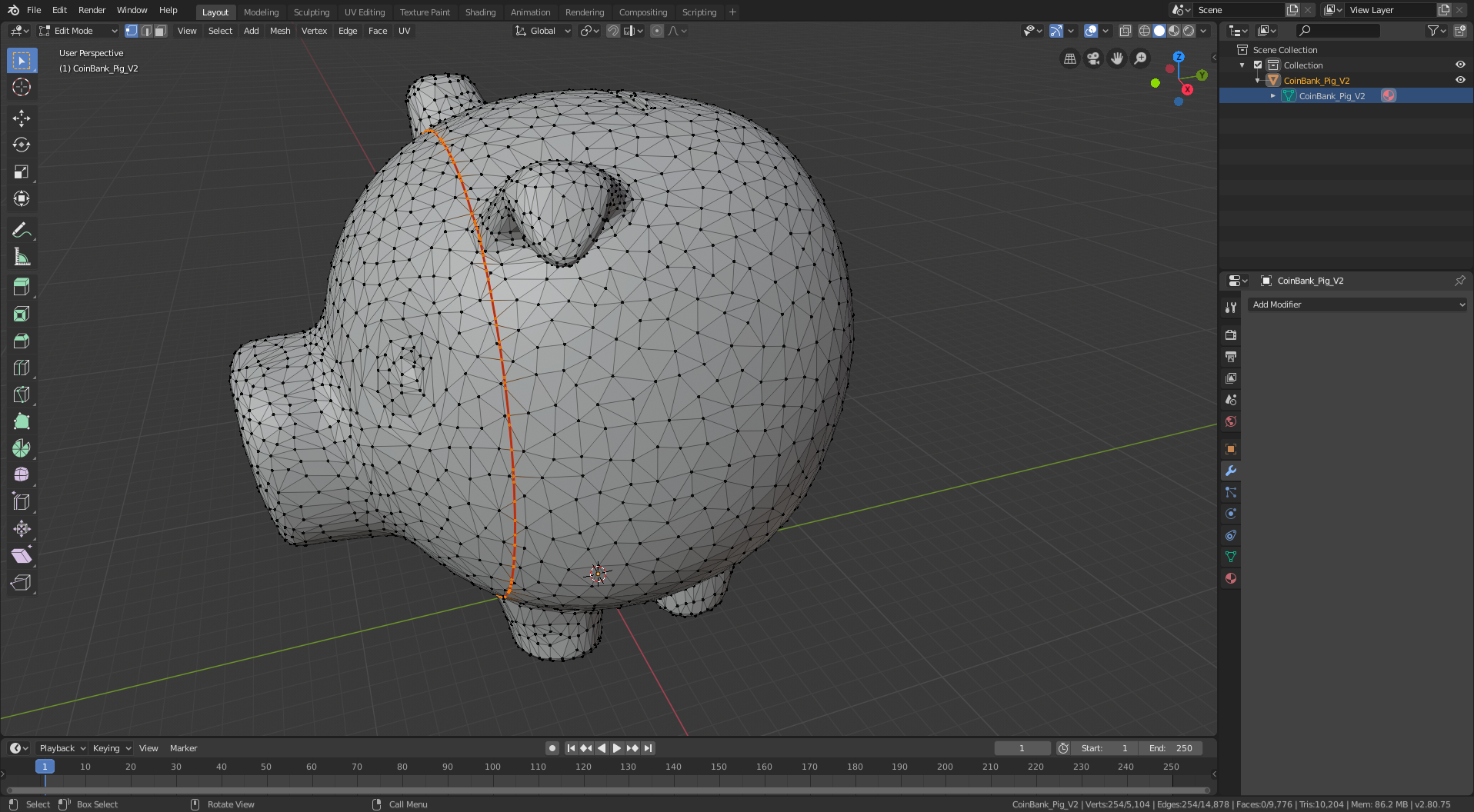 I took a number of screenshots to document this project, but I waited many months between finishing the pig and writing this documentation (bad David!) so I no longer remember what they were all for. Instead of reverse engineering it myself, I’m just going to provide each image with the few words of description I left myself and you can figure out the meaning yourself (good luck!). The images are ordered to match the blender commands: